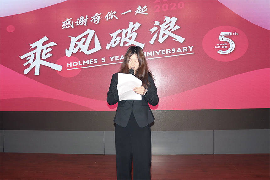 霍爾姆斯各中心負責人以及新老員工代表亦登臺致辭,人事行政部Anne 2017年加入霍爾姆斯,見(jiàn)證了公司成員從5人到20人不斷壯大的過(guò)程。產(chǎn)品中心Tina 表示沒(méi)有完美的個(gè)人,只有完美的團隊,愿大家一起成長(cháng)。供管中心Linda回憶了自己初入公司時(shí)曾懷疑自己是否勝任工作,但是得到領(lǐng)導不斷的鼓勵和指引的心路歷程。老員工代表Rick在霍爾姆斯第一位員工,五年來(lái)兢兢業(yè)業(yè),是霍爾姆斯從無(wú)到有,從有到優(yōu)的見(jiàn)證者,他兩次鞠躬,感動(dòng)了在場(chǎng)的每一個(gè)人。新員工代表Mary是一位95后女生,她表示來(lái)到霍爾姆斯是偶然也是一份幸運,心思細膩的她細數了每一位同事對她工作上的幫助和關(guān)懷。